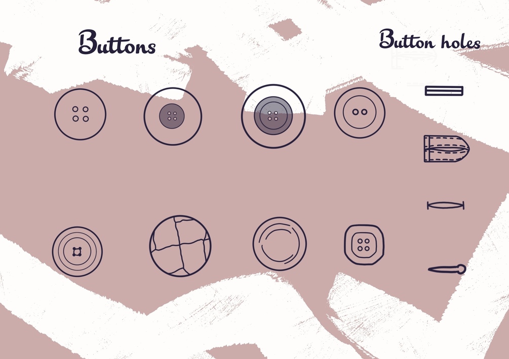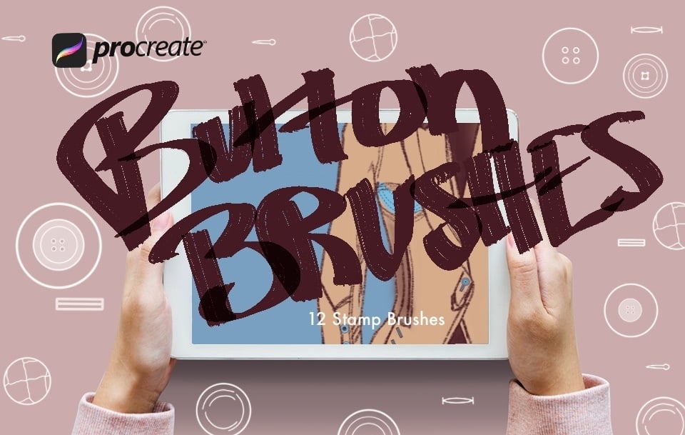 Create quick fashion flats, illustrations, details for children books, gift cars and more with this Button stamp brushes set for Procreate 5.